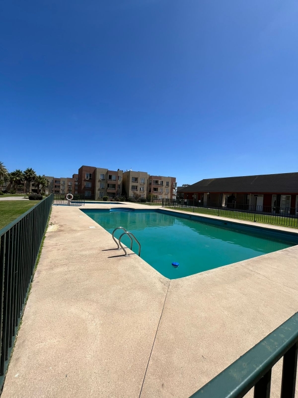 Además, cuenta con un estacionamiento, muchas áreas verdes, salón de eventos, multicancha, piscinas para adultos y niños y quinchos.