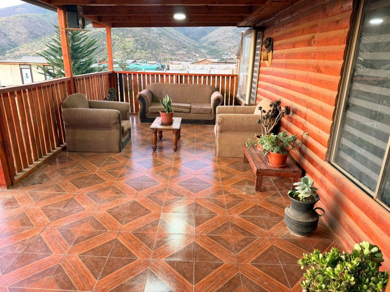 Casa principal: amplia terraza, living–comedor grande, cocina grande, 5 dormitorios, 2 baños (1 en suite con vista a la piscina).